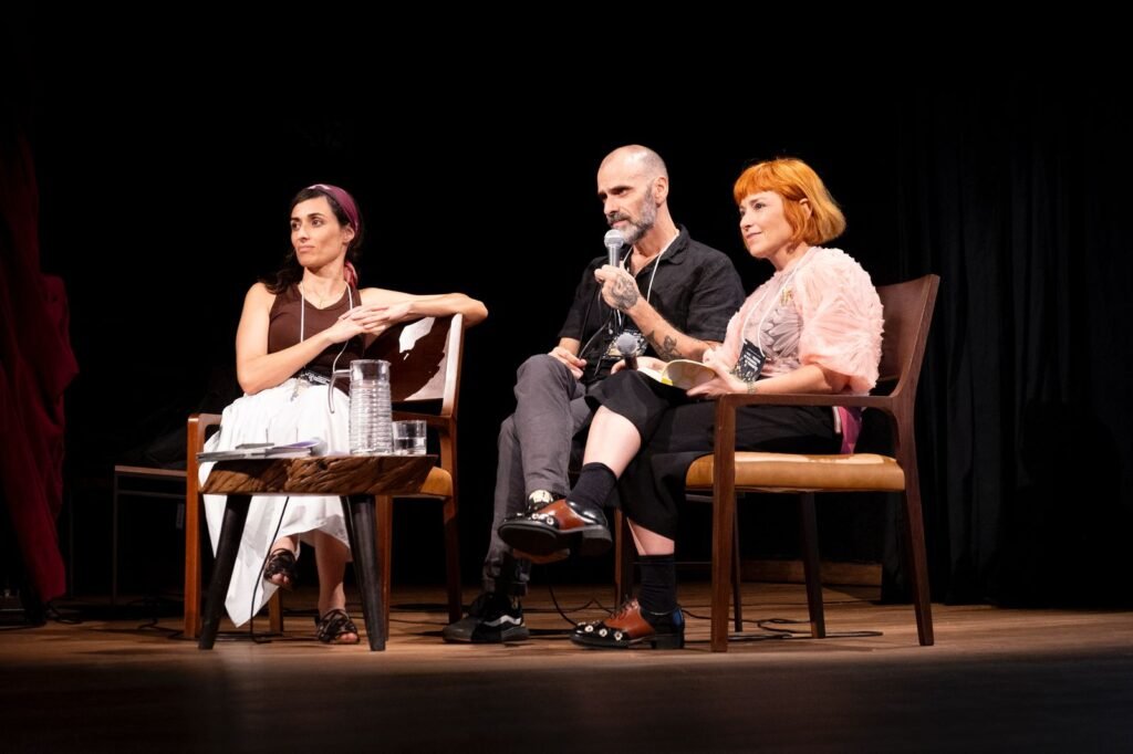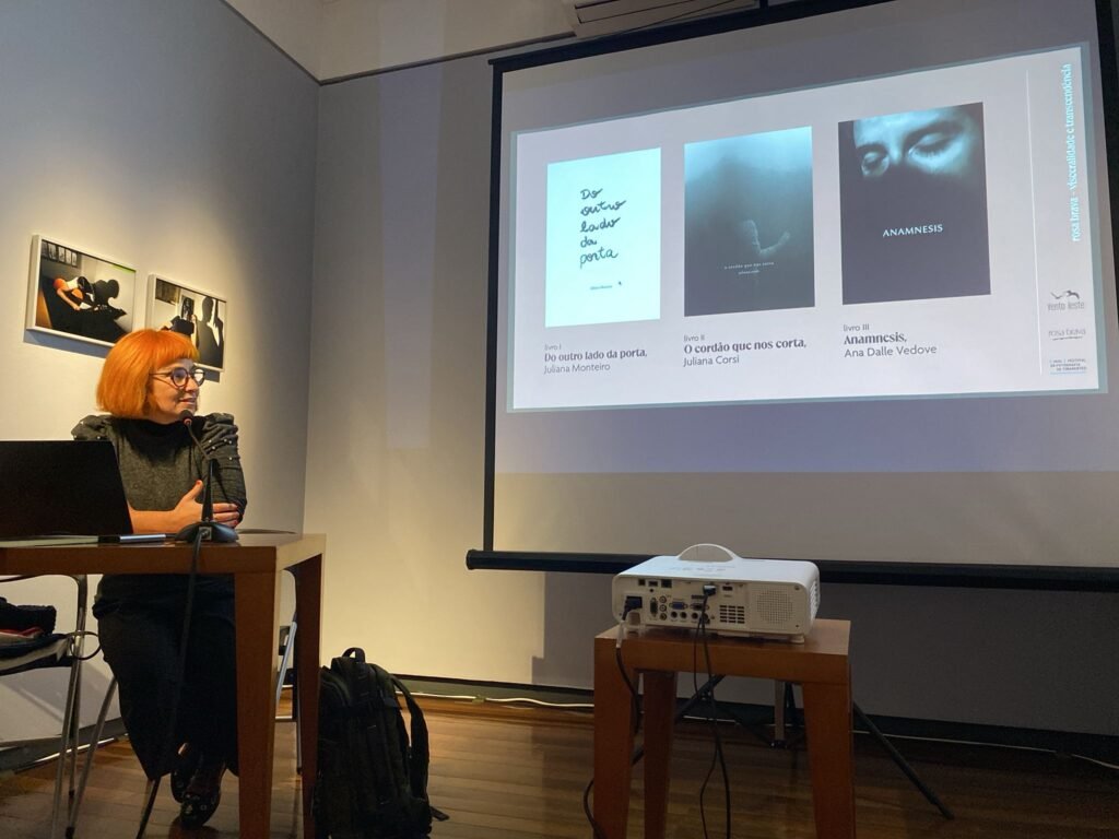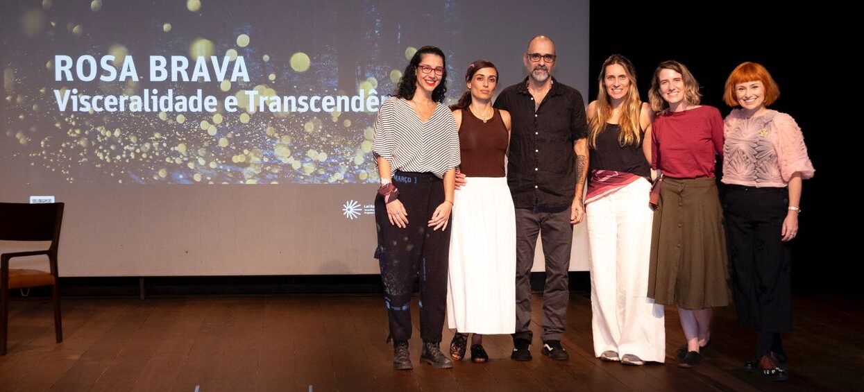 Por meio da editora Vento Leste, Helena Rios, Marcelo Greco e Ângela Berlinde apresentaram a coleção Rosa Brava e conversaram sobre as ideias de visceralidade e transcendência, conceitos presentes nos trabalhos que integram a coleção.